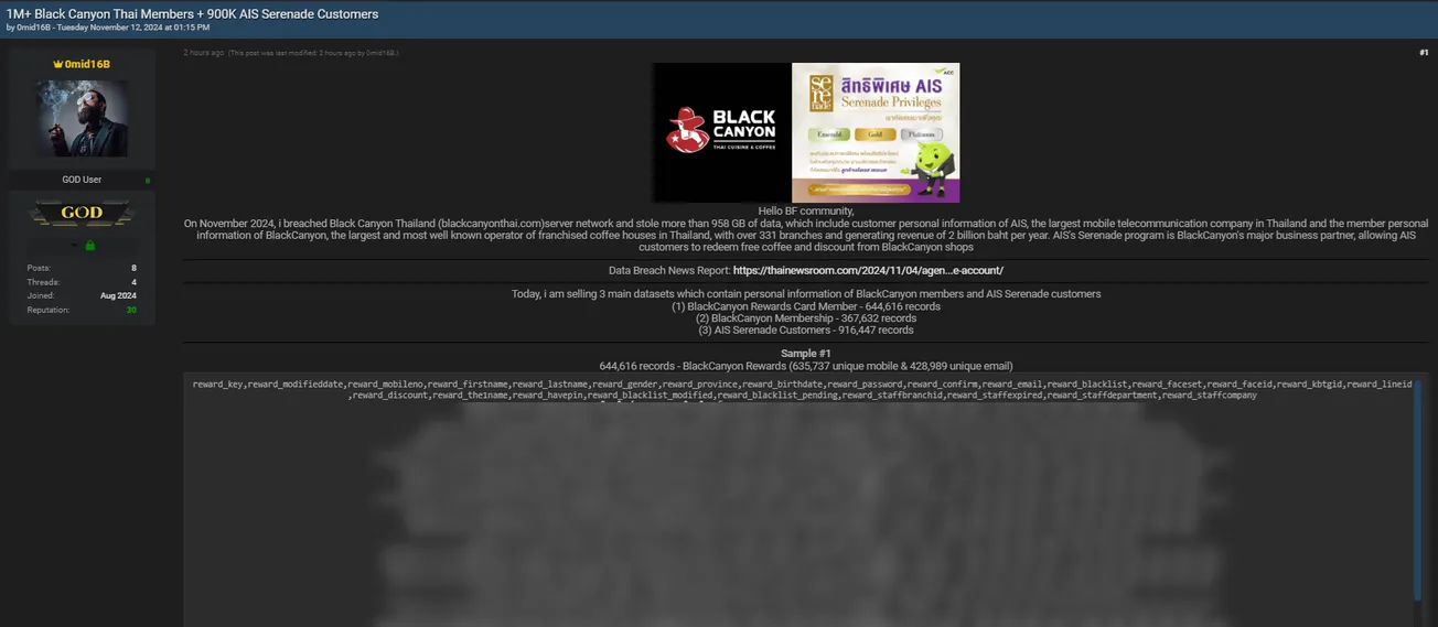 🚨 Title: BLACK CANYON database allegedly kept for sale