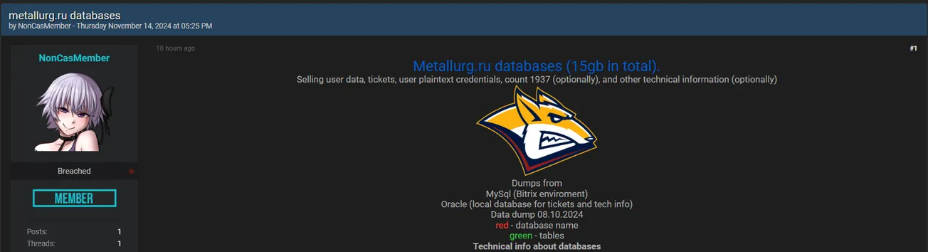 A Threat Actor is Allegedly Selling Data of Metallurg Magnitogorsk