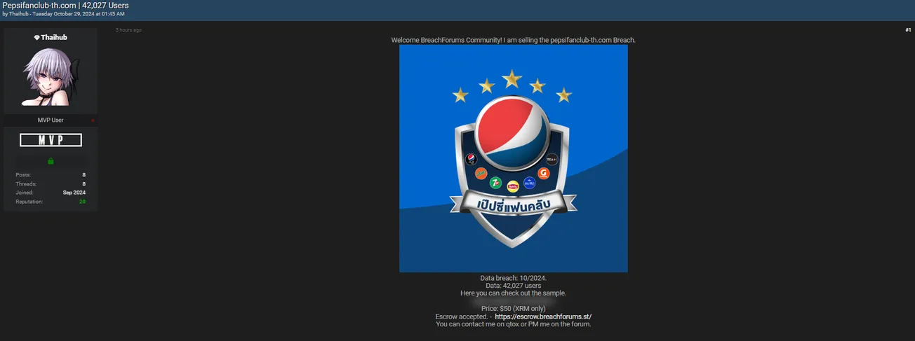 A Threat Actor is Allegedly Selling Data of Pepsi Fanclub