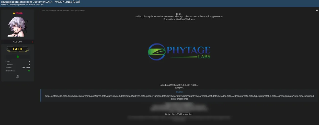 A Threat Actor is Allegedly Selling Data of Phytage Labs