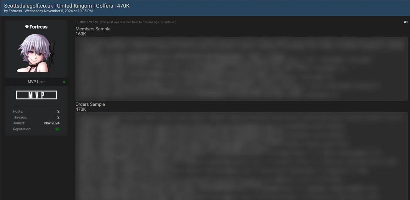 A Threat Actor is Allegedly Selling Data of Scottsdale Golf