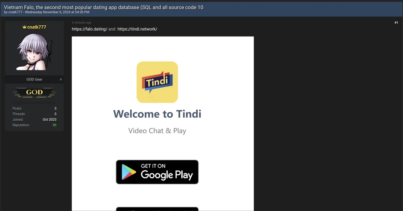 A Threat Actor is Allegedly Selling Data of Tindi Network