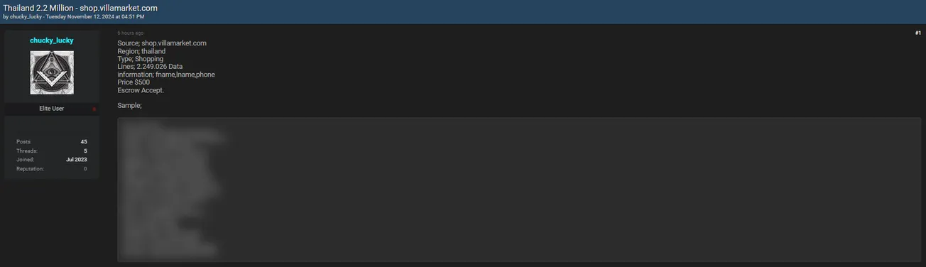 A Threat Actor is Allegedly Selling Data of Villa Market