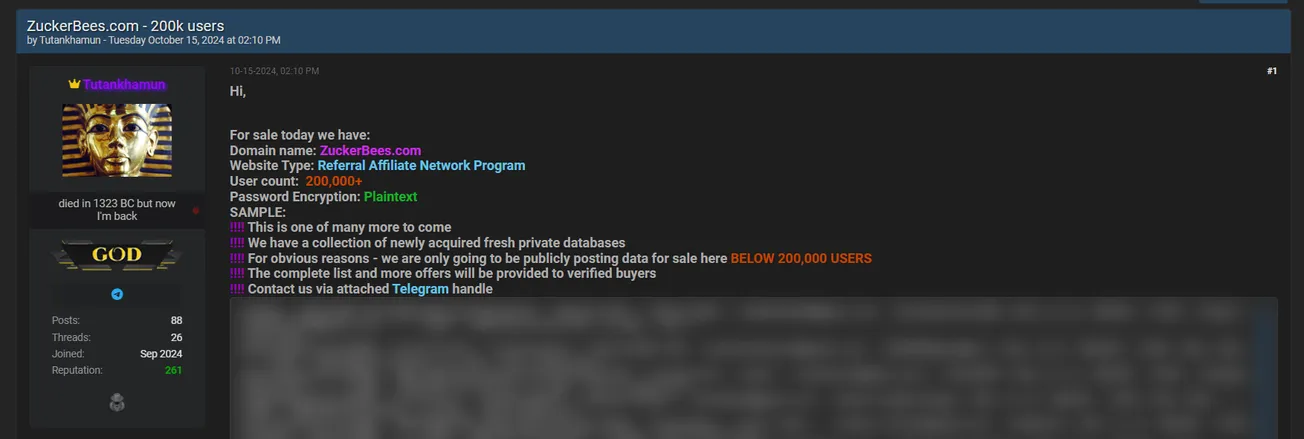 A Threat Actor is Allegedly Selling Data of ZuckerBees