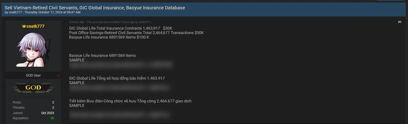 A Threat Actor is Allegedly Selling Databases to Multiple Insurance Websites