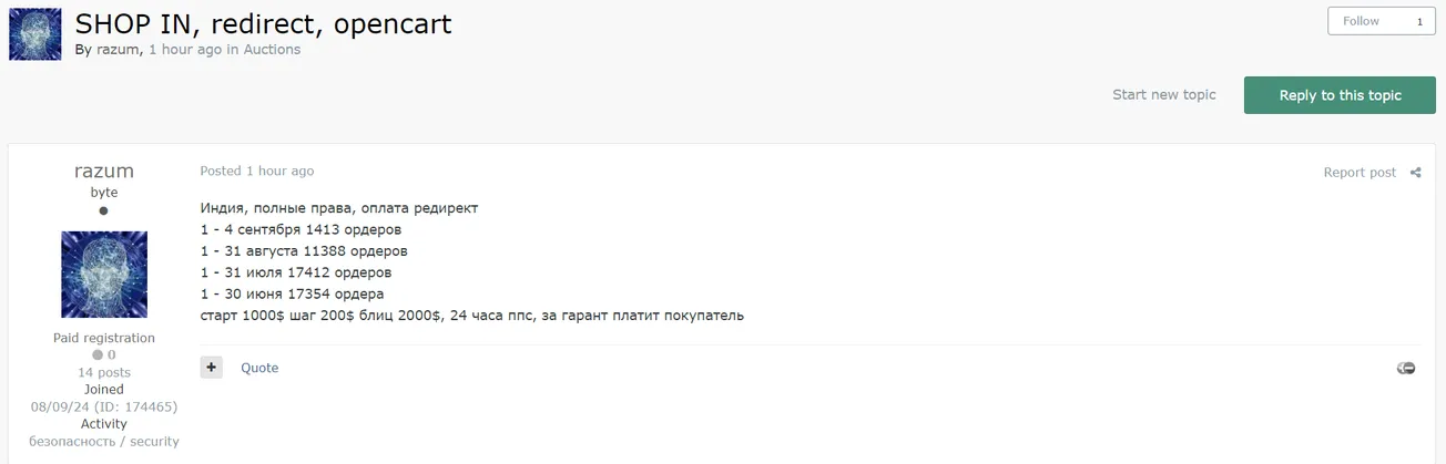 Auction end: 24 hours after the last bid.