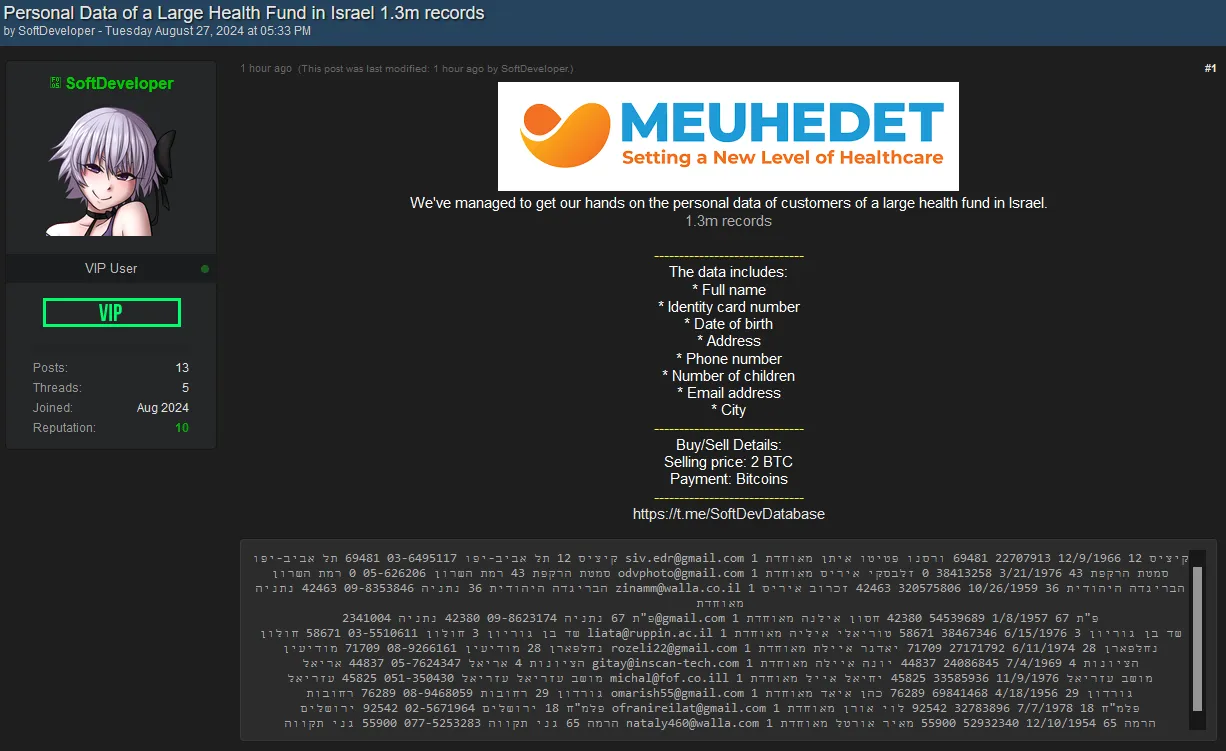We've managed to get our hands on the personal data of customers of a large health fund in Israel.