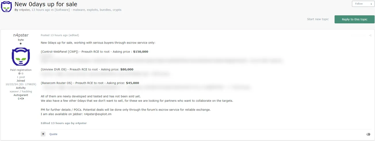 A Threat Actor is Allegedly Selling Multiple Zero-day Vulnerabilities