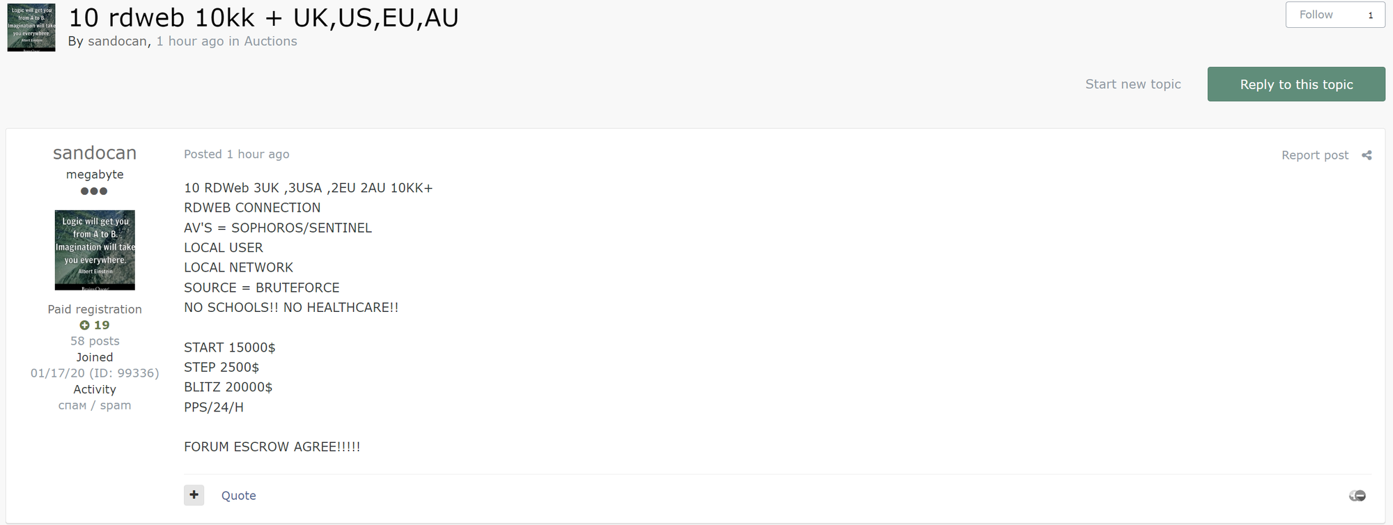 - Offer: 10 RDWeb 3UK, 3USA, 2EU, 2AU, 10KK+