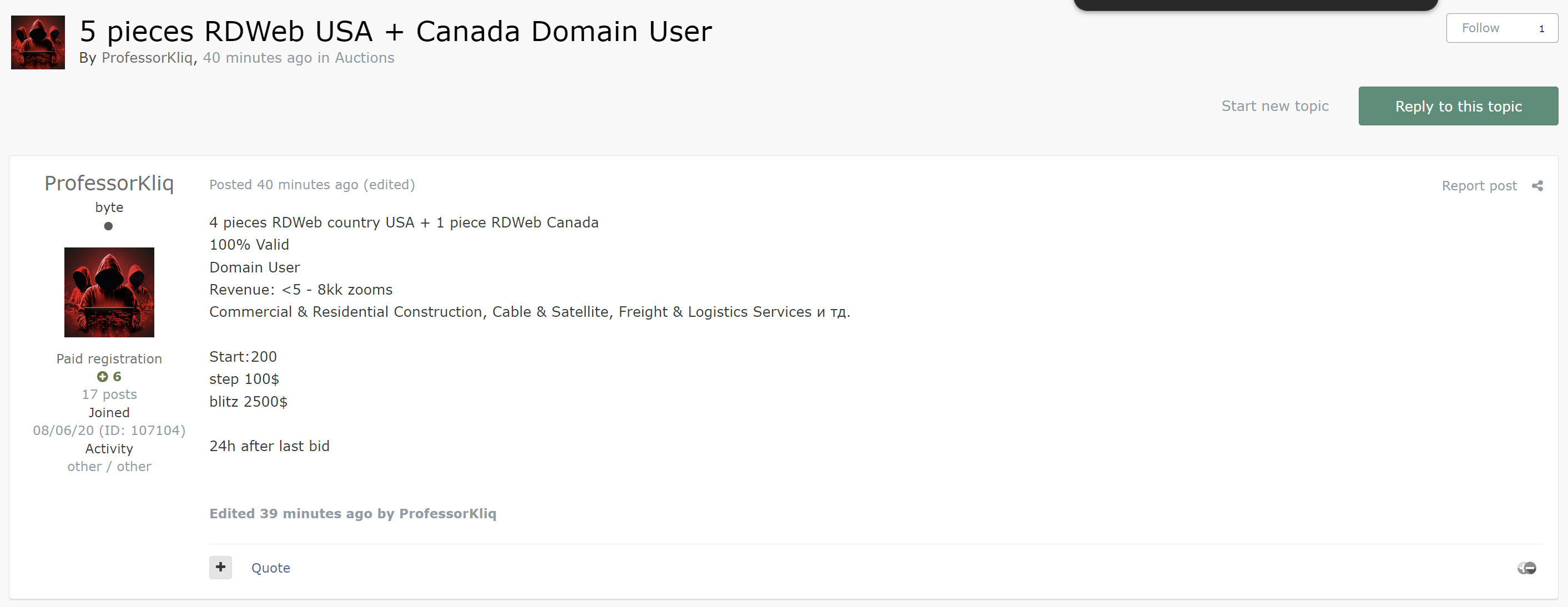 - 24h after last bid