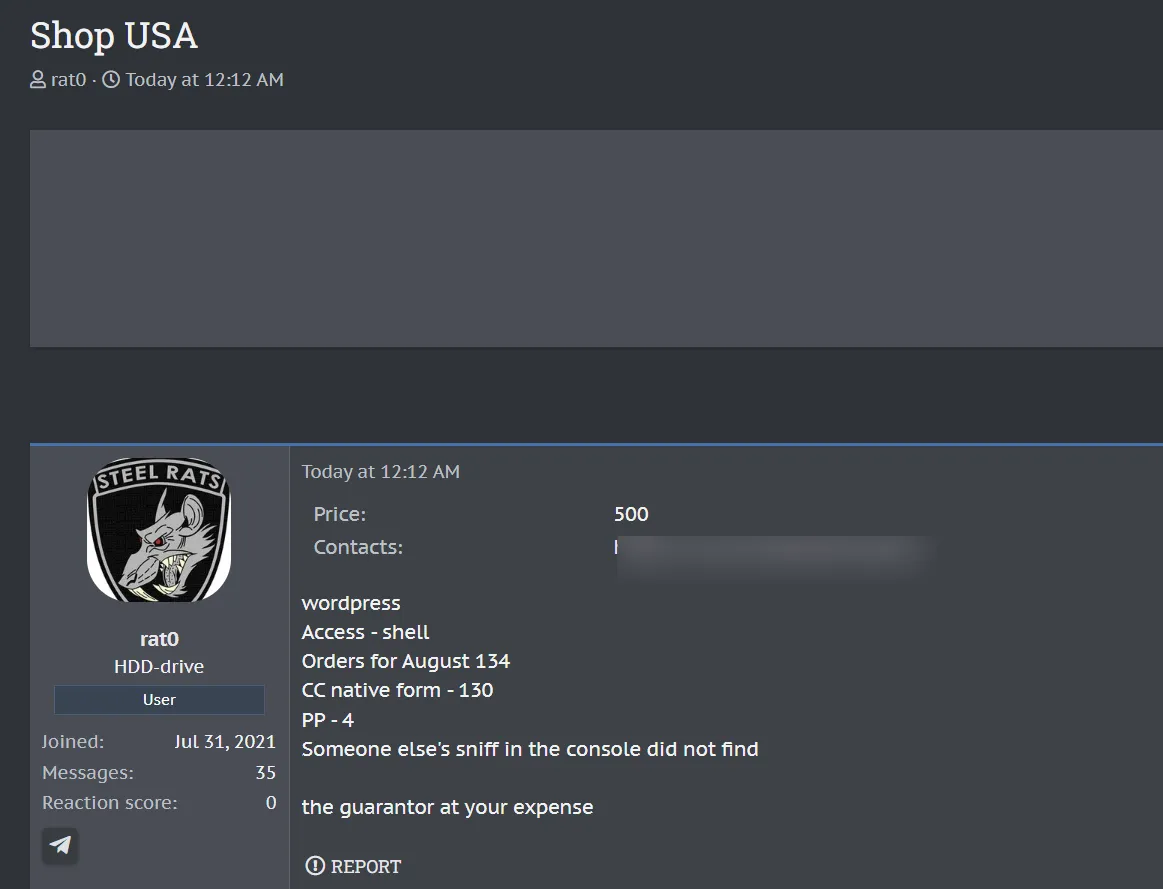 A Threat Actor is Allegedly Selling Shell Access to an Unidentified Shop in the USA