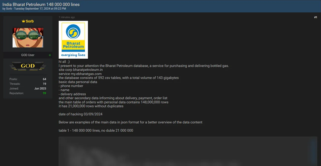 A Threat Actor is Allegedly Selling the Bharat Petroleum Corporation Limited Database