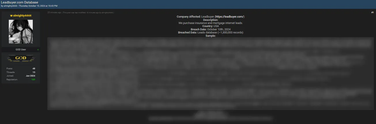 A Threat Actor is Allegedly Selling the data of Lead Buyer