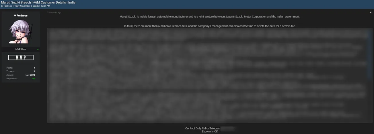A Threat Actor is Allegedly Selling the Data of Maruti Suzuki