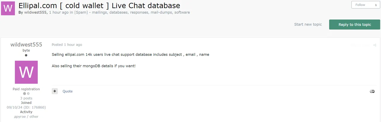 A Threat Actor is Allegedly Selling the Database of ELLIPAL