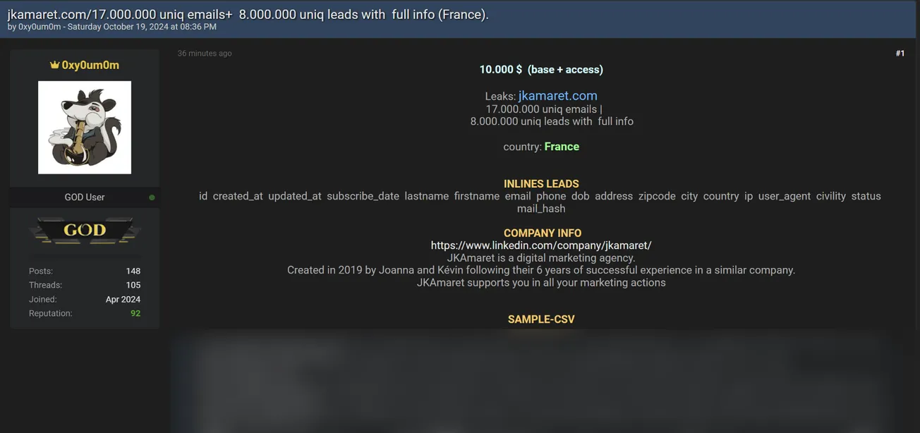 A Threat Actor is Allegedly Selling the Database of JKAmaret