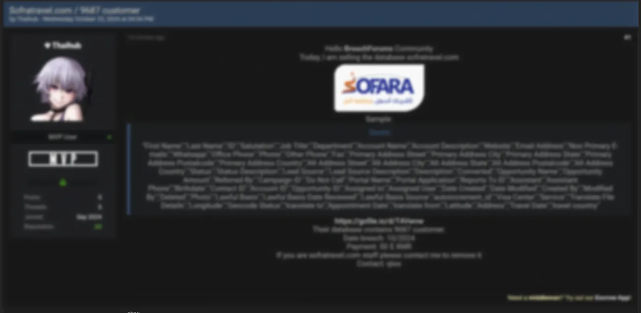 A Threat Actor is Allegedly Selling the Database of Sofara for Visas & Translation