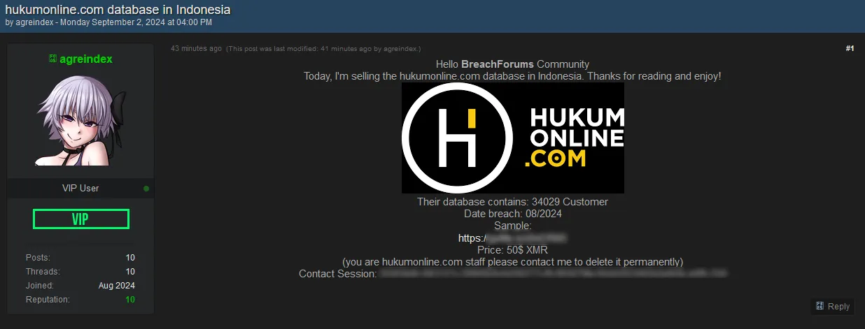 Today, I'm selling the hukumonline.com database in Indonesia. Thanks for reading and enjoy!