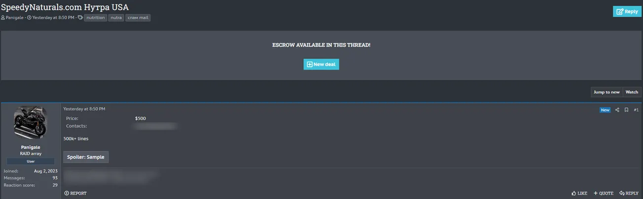 A Threat Actor is Allegedly Selling the Speedy Naturals Database
