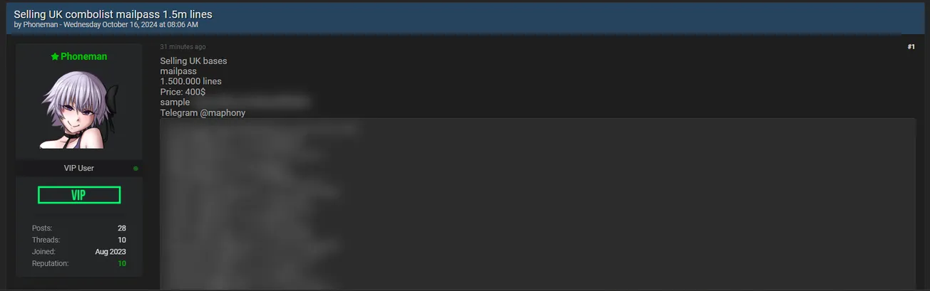 A Threat Actor is Allegedly Selling UK Citizens Mailpass Credentials
