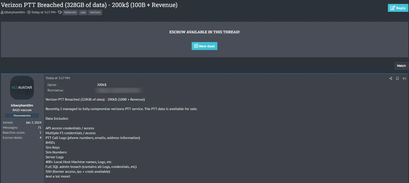 A Threat Actor is Allegedly Selling Verizon PTT data