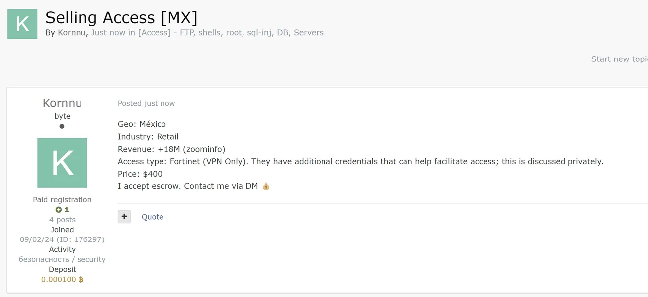 A Threat Actor is Allegedly Selling VPN Access to an Unidentified Retail Company in Mexico