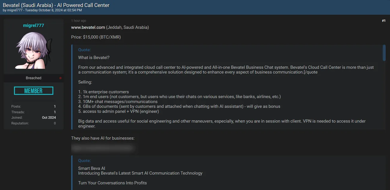 A Threat Actor is Allegedly Selling VPN and Admin Panel Access to Bevatel