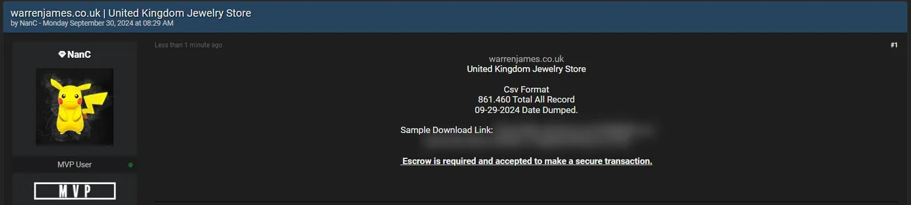 🚨 Title: Alleged sale of Warren James Jewellers data