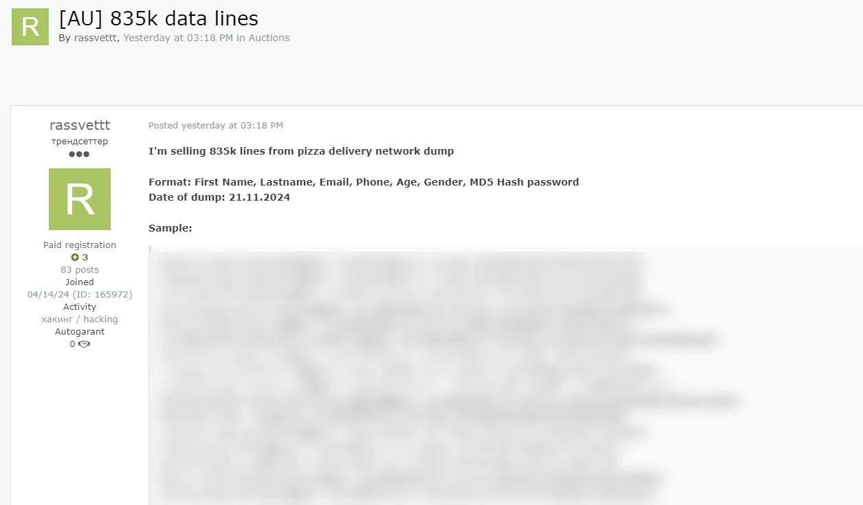 A Threat Actor is Claiming to Sell 835,000 records of an Unidentified Australian Organization