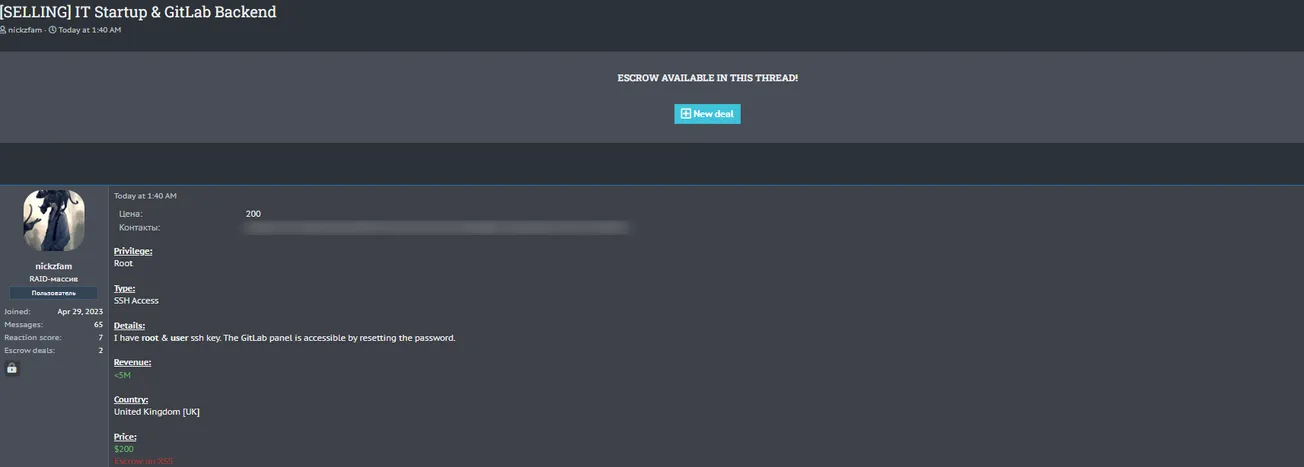 A Threat Actor is Claiming to Sell Unauthorized Access to an IT Company in the UK