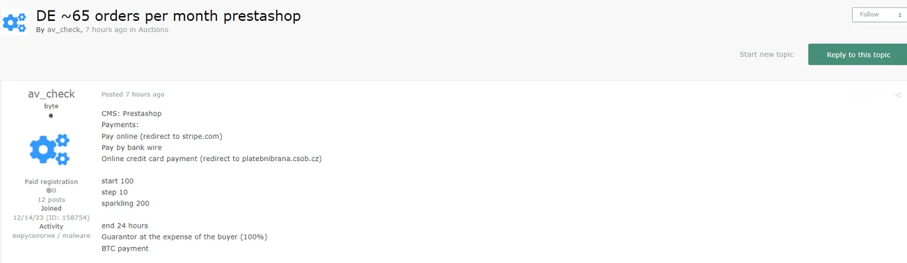 A Threat Actor is Selling Access to an Unidentified German E-commerce Site