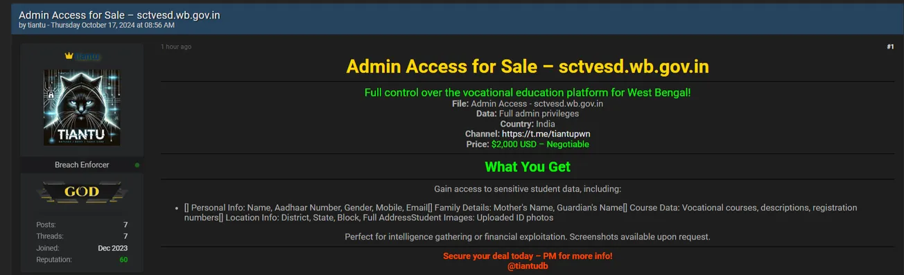 🚨 Title: Alleged sale of admin access to WBSCTVESD