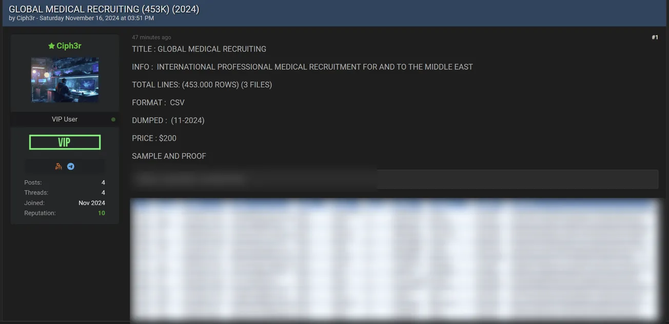 A Threat Actor is Selling Data of GLOBAL MEDICAL RECRUITING