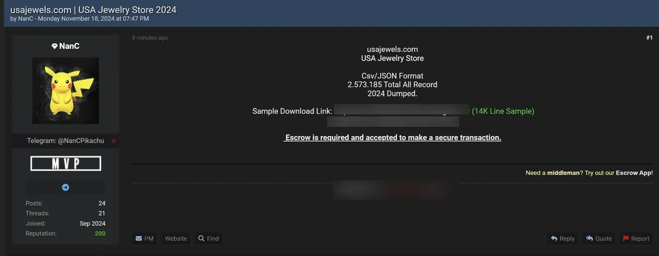 🚨 Title: Alleged database sale of USA Jewels