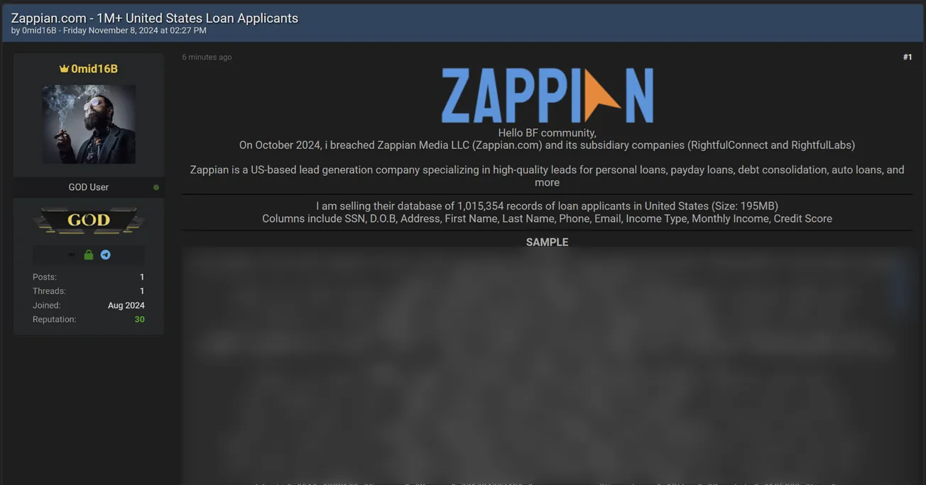 A Threat Actor is Selling Data of Zappian