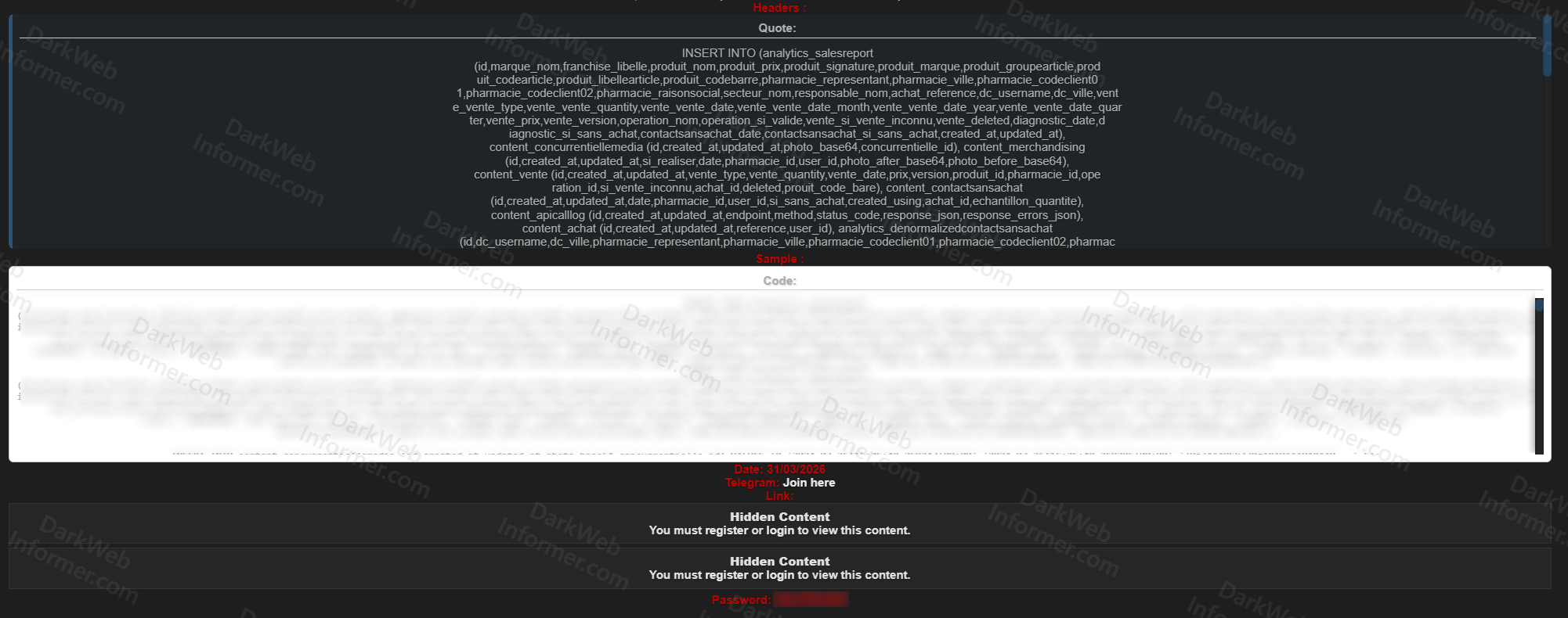 This breach exposes L'Oreal Morocco's complete sales operation infrastructure, field intelligence apparatus, pharmacy distribution network, and product pricing strategy across the country.