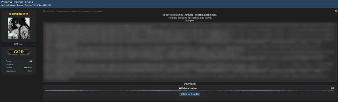 almighty4444 Allegedly Leaked the Data of Panama Personal Loans