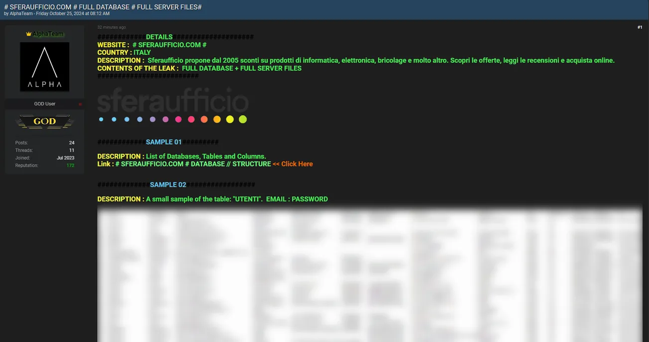 AlphaTeam is Allegedly Selling Database and Server Files of Sfera Ufficio