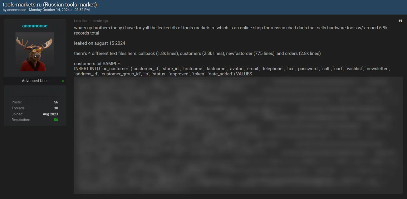 anonmoose Allegedly Leaked Toolsmarkets Database