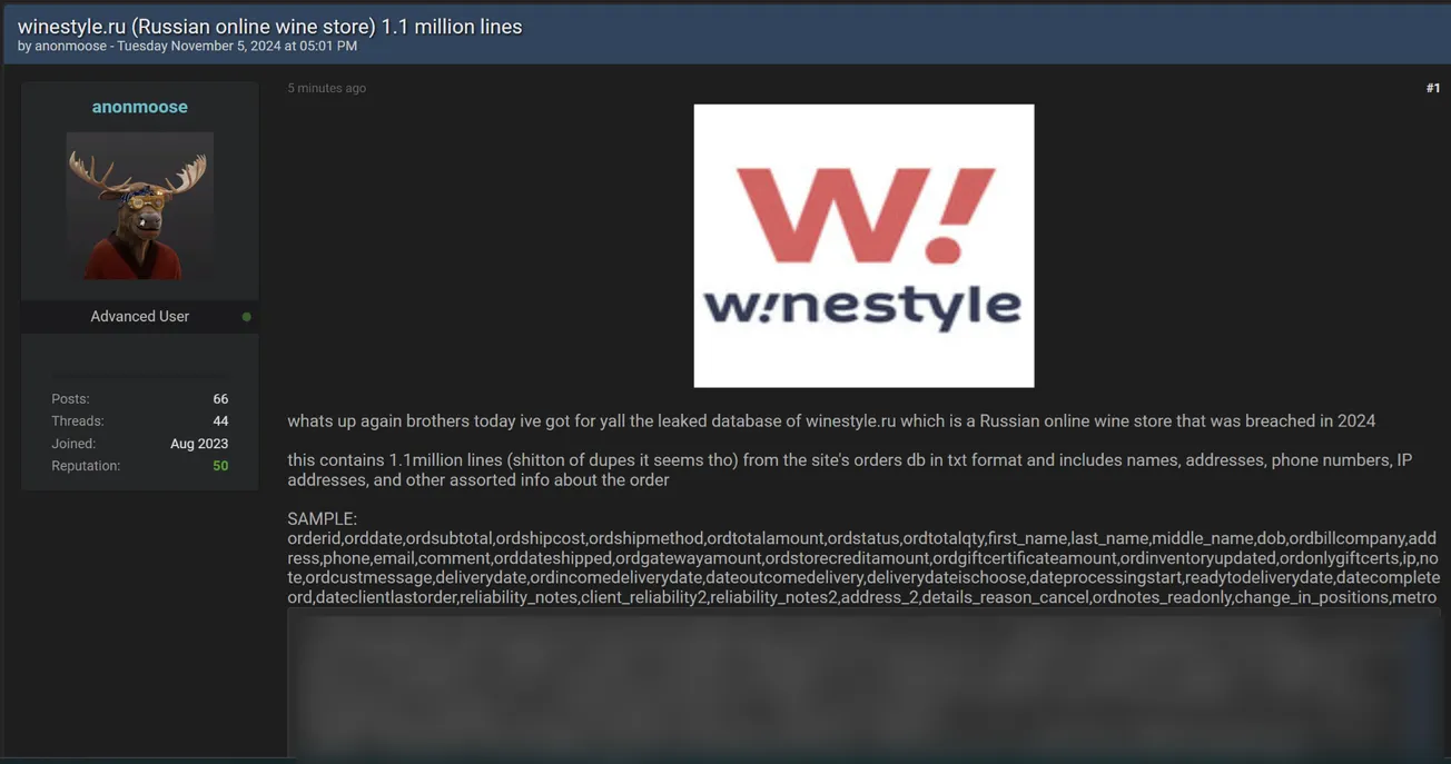 🚨 Title: Database of WineStyle Store allegedly leaked