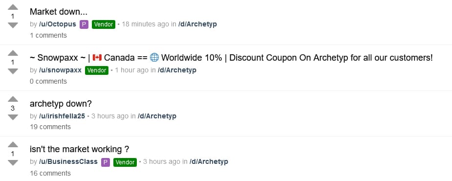 Archetyp Market is currently experiencing issues