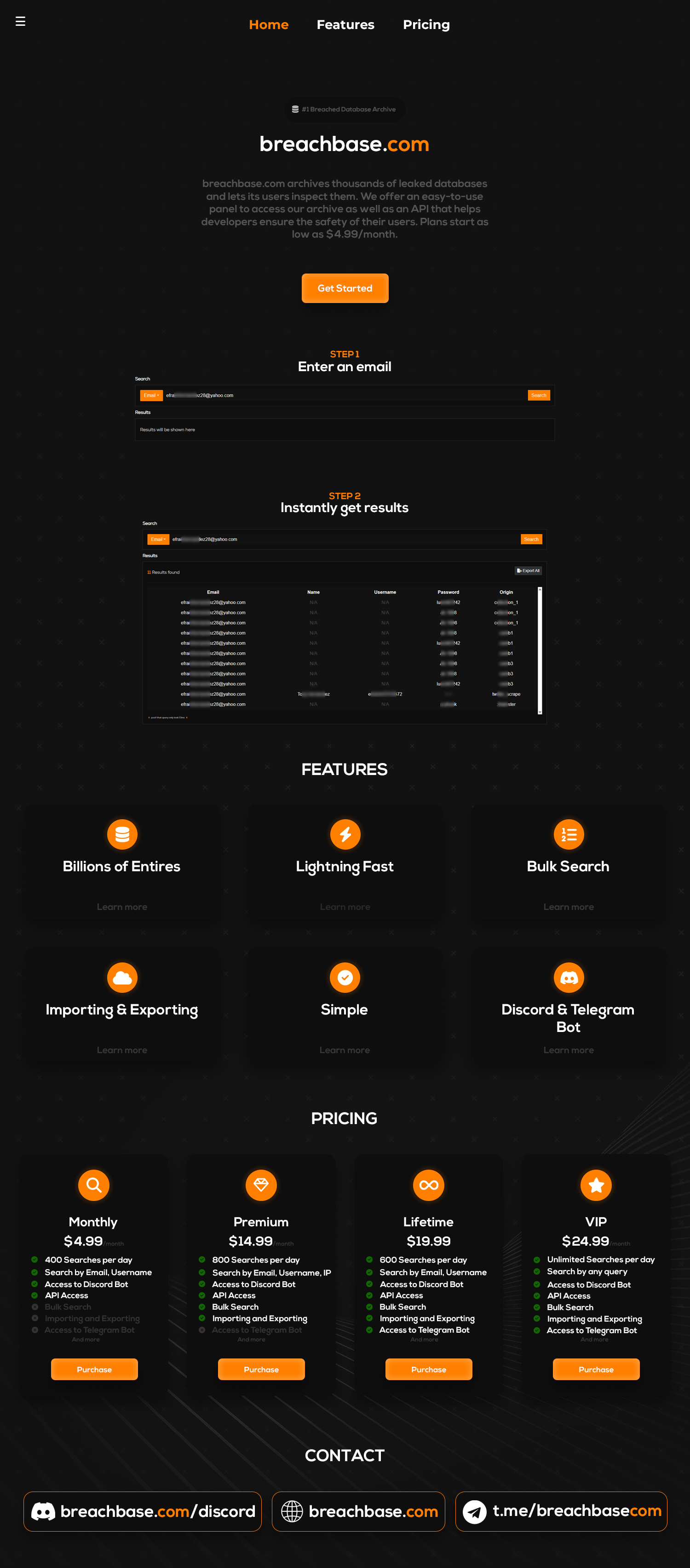 - Advanced Search Capabilities: No more sifting through endless pages of junk data. BreachBase lets you search by email, domain, password, and more. You get what you need, when you need it.