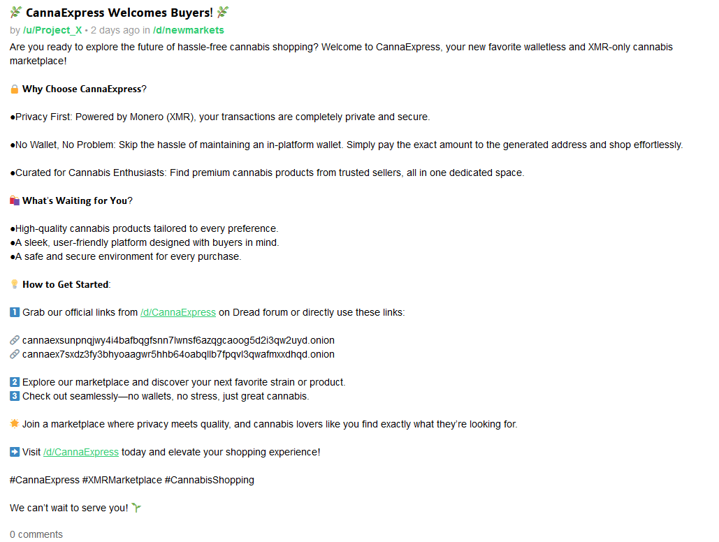 Are you ready to explore the future of hassle-free cannabis shopping? Welcome to CannaExpress, your new favorite walletless and XMR-only cannabis marketplace!