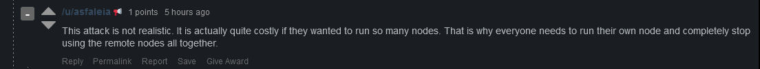 - if one is using remote node (any remote node except his own), he can easily be the victim of the Chanalysis ongoing deanonymization attack.