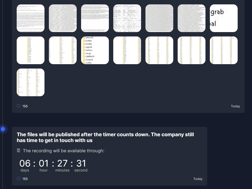 The Everest ransomware group claims to have successfully breached Chrysler, a major automotive manufacturer, and obtained 1088 GB of the organization's internal data. The threat actor has publicly announced their intention to publish the stolen data within 6-7 days if their demands are not met.