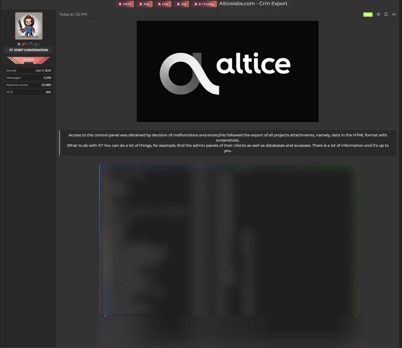🚨 Title: Alleged leak of exported CRM data from Altice Labs