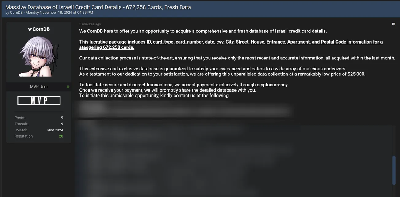 🚨 Title: Alleged Credit Card data sale of Israeli Citizens