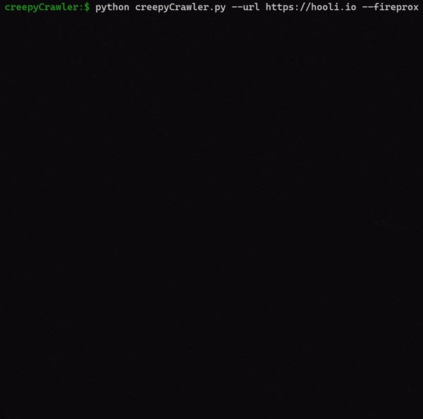 creepyCrawler.py --url URL [--email EMAIL] [--threads THREADS] [--limit LIMIT] [--proxy PROXY] [--headers HEADERS] [--fireprox]