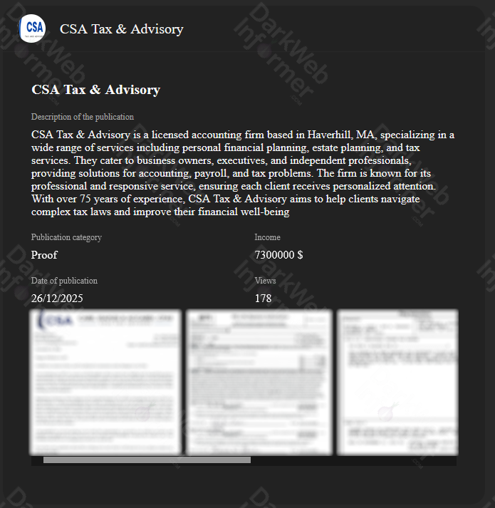 The LYNX ransomware group claims to have obtained data from CSA Tax & Advisory, a licensed accounting firm based in Haverhill, Massachusetts.