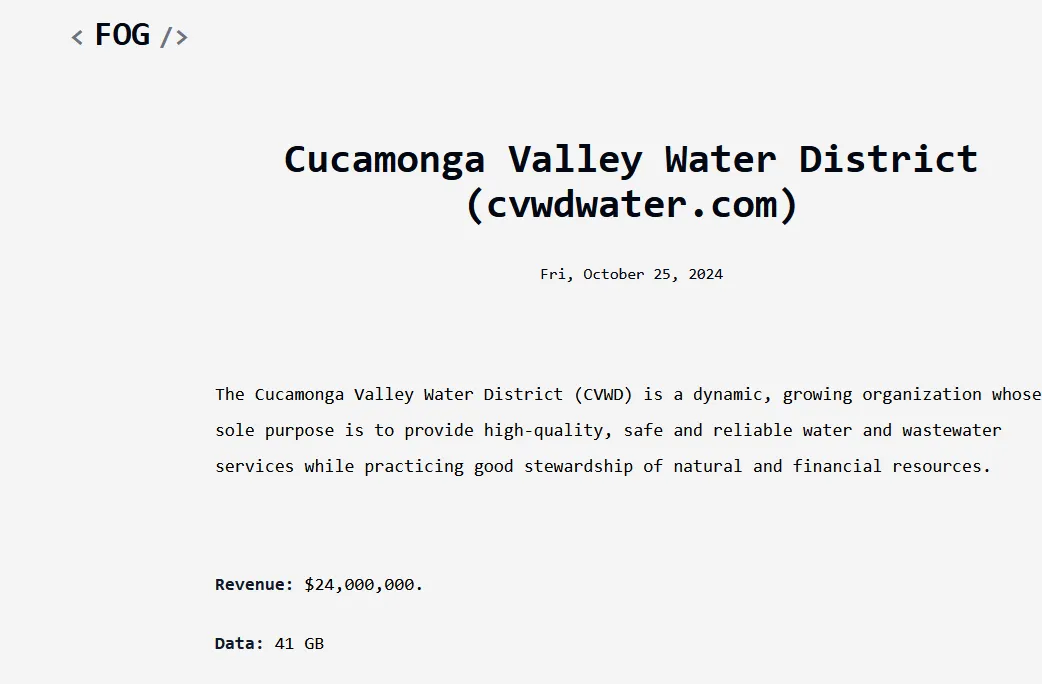 Cucamonga Valley Water District Has Been Claimed a Victim to FOG Ransomware